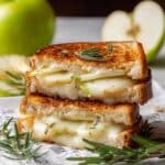 This 15-Minute Brie and Apple Grilled Cheese is a delightful blend of creamy brie, sweet honey, and crisp green apple slices nestled between buttery sourdough bread. Cooked to golden perfection on the stovetop, this sandwich offers a perfect balance of savory and sweet flavors, complemented by an optional fresh rosemary garnish for an aromatic touch.