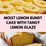 A bright and zesty lemon cake featuring a moist yellow cake base enhanced with instant lemon pudding mix and topped with a tangy lemon glaze. Perfectly baked in a Bundt pan, this cake offers a delightful balance of sweetness and citrus flavor that’s ideal for any occasion.