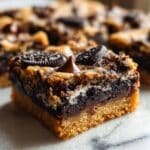 Keywords: Slutty Brownies, layered brownies, cookie dough brownies, Oreo brownies, chocolate dessert, easy brownies recipe