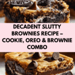 Amazing Slutty Brownies are an irresistible layered dessert combining the classic flavors of chocolate chip cookie dough, Oreo cookies, and fudgy brownies. This decadent treat features a base of soft cookie dough topped with a generous layer of Oreos, all covered with rich brownie batter. Baked to perfection, these brownies are a crowd-pleaser perfect for parties, potlucks, or whenever you crave a chocolatey indulgence.