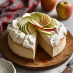This Apple Cider Cheesecake features a spiced apple cider reduction infused into a smooth cream cheese filling atop a buttery, crumbly cookie crust. The cake is baked in a water bath to ensure a creamy, crack-free texture, making it a perfect dessert for fall and holiday gatherings.