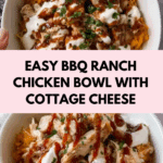 The BBQ Ranch Chicken Bowl is a flavorful and satisfying meal that combines tender chicken with creamy cottage cheese, tangy ranch, and smoky BBQ sauce. It’s a quick and easy dish perfect for lunch or dinner, especially when you want something nutritious yet delicious.