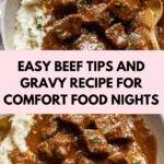 Beef Tips and Gravy is a comforting, hearty dish perfect for cozy dinners. Tender beef cubes are cooked in a rich, savory gravy that pairs beautifully with mashed potatoes or noodles. This recipe brings restaurant-quality flavor right to your home kitchen.