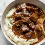 - This dish pairs beautifully with creamy mashed potatoes or egg noodles but can also be served over rice.