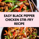 A flavorful and quick-cooking Black Pepper Chicken recipe featuring tender chicken breasts sautéed with fresh ginger, garlic, and colorful bell peppers, all coated in a rich, savory black pepper sauce. Perfect for a delicious weeknight dinner packed with vibrant Asian-inspired flavors.