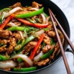 A flavorful and quick-cooking Black Pepper Chicken recipe featuring tender chicken breasts sautéed with fresh ginger, garlic, and colorful bell peppers, all coated in a rich, savory black pepper sauce. Perfect for a delicious weeknight dinner packed with vibrant Asian-inspired flavors.