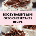 Keywords: Boozy Baileys Mini Cheesecakes, Irish Cream Cheesecakes, No-Bake Cheesecake, Oreo Crust Dessert, Mini Cheesecakes