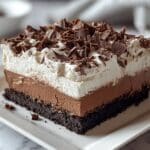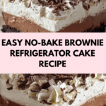 This Brownie Refrigerator Cake is a decadent no-bake layered dessert that combines a rich homemade brownie base with creamy layers of sweetened cream cheese, luscious chocolate and vanilla pudding, and fluffy whipped topping. Finished with a sprinkle of grated chocolate or a drizzle of chocolate syrup, this cake is chilled to perfection, making it an ideal make-ahead treat that’s creamy, chocolatey, and irresistibly smooth.