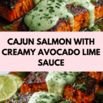 This Cajun Salmon with Avocado Lime Crema is a flavorful and vibrant dish that’s perfect for a quick weeknight dinner or a special meal. The spicy, smoky seasoning on the salmon pairs beautifully with the creamy, tangy avocado lime sauce. Serve it with rice or in tacos for a fresh and satisfying experience.
