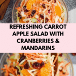 A refreshing and sweet carrot apple salad combining crisp apples, crunchy matchstick carrots, and tangy dried cranberries, all tossed in a creamy vanilla yogurt and mayo dressing with a hint of sweetness and citrus.