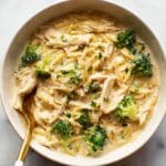 PrintCheesy Chicken Broccoli Orzo Recipe