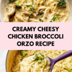 Keywords: cheesy chicken broccoli orzo, one pot chicken pasta, creamy chicken pasta, quick chicken dinner, cheesy orzo recipe