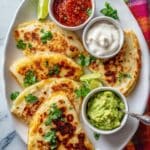 - Serve: Transfer the quesadilla to a cutting board and slice into 6 pieces using a pizza cutter or sharp knife. Serve immediately with your favorite sides and enjoy your cheesy, flavorful meal!