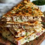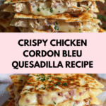 Chicken Cordon Bleu Quesadillas combine the classic flavors of chicken, ham, and Swiss cheese with a crispy, cheesy tortilla wrap. This fusion dish is quick to prepare and perfect for a satisfying lunch or dinner.
