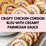 Chicken Cordon Bleu is a classic dish that features tender chicken breasts stuffed with ham and Swiss cheese, coated in a crispy breadcrumb crust, and topped with a creamy sauce. It’s an elegant yet approachable meal perfect for family dinners or special occasions.