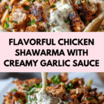 Chicken shawarma is a vibrant and flavorful Middle Eastern dish that’s perfect for a quick weeknight dinner or a special gathering. Tender marinated chicken strips are grilled to perfection and served with a creamy garlic sauce that adds a delicious zing.