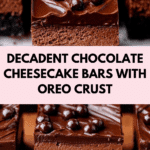 These rich and creamy Chocolate Cheesecake Bars feature a crunchy Oreo crust topped with a smooth and decadent chocolate cheesecake filling, finished with a luscious chocolate ganache. Perfect for chocolate lovers seeking an indulgent dessert that’s easy to prepare with simple ingredients.