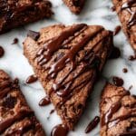These rich and tender chocolate scones are a perfect treat for chocolate lovers. Made with cocoa powder and mini chocolate chips, these scones have a moist crumb and a slightly crisp exterior. Topped optionally with a silky chocolate drizzle, they make an indulgent breakfast, snack, or dessert that’s easy to prepare and bake from scratch.