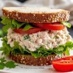 A simple and classic tuna sandwich made with flaky tuna, creamy mayonnaise, fresh lemon juice, and crunchy celery and red onion, served on your choice of whole grain or white bread. Quick to prepare and perfect for a nutritious lunch or a light snack.
