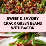 Crack Green Beans is a deliciously sweet and savory side dish that combines tender green beans with a rich sauce made from butter, brown sugar, soy sauce, garlic powder, and black pepper. Crisp bacon adds a smoky crunch, making this baked green bean dish irresistible and perfect for any meal.