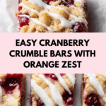 These Cranberry Crumble Bars feature a buttery shortbread crust combined with a tangy cranberry filling and a crumbly topping. Perfect for the holiday season or anytime you crave a sweet and tart treat, these bars balance festive flavors with a luscious vanilla glaze, delivering a delicious dessert that’s easy to make and sure to impress.