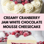 This Cranberry Jam White Chocolate Mousse Cheesecake is a stunning dessert that combines tart cranberries with rich white chocolate mousse. Perfect for festive occasions or a special treat, it offers layers of flavor and creamy texture that everyone will love.