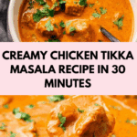 This Chicken Tikka Masala recipe is a flavorful and creamy Indian-inspired dish featuring tender, marinated chicken chunks seared to a perfect char and simmered in a rich spiced tomato cream sauce. Ideal for a comforting dinner, it balances the aromatic spices of garam masala, garlic, and paprika with the smoothness of heavy cream and yogurt.