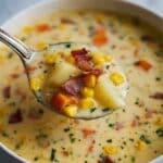 Keywords: corn chowder, creamy corn soup, potato corn chowder, vegetarian chowder, comfort food soup
