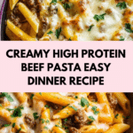 This Creamy High Protein Beef Pasta is a comforting and satisfying meal that’s perfect for weeknight dinners. Packed with lean ground beef and rich Greek yogurt, it delivers a great balance of protein and flavor in a creamy, cheesy sauce.
