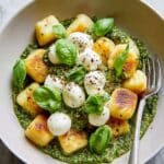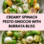 This Creamy Spinach Pesto Gnocchi with Burrata is a delightful Italian-inspired dish featuring pillowy gnocchi tossed in a vibrant, homemade spinach pesto. Topped with creamy burrata cheese and a drizzle of olive oil, it offers a perfect balance of fresh, nutty, and cheesy flavors. Simple yet elegant, this recipe is ideal for a comforting dinner or impressive meal for guests.