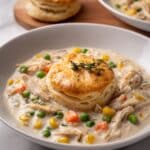 Store leftovers in an airtight container in the refrigerator for up to 3 days. Reheat gently in the microwave or on the stovetop until warmed through. Biscuits are best enjoyed fresh but can be reheated separately in the oven to maintain flakiness.