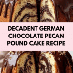This Decadent German Chocolate Pecan Pound Cake Delight is a rich and moist treat perfect for any occasion. Combining the classic flavors of German chocolate and toasted pecans, it offers a luscious texture topped with a creamy chocolate glaze. It’s sure to become a favorite in your dessert rotation.