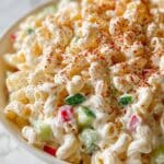 This Deviled Egg Macaroni Salad combines creamy mayonnaise and tangy mustard with chopped hard-boiled eggs and tender elbow macaroni, creating a flavorful and satisfying side dish perfect for picnics, barbecues, or potlucks.