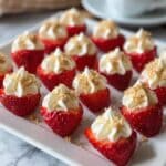 Delightful Deviled Strawberries are a fun and elegant twist on the classic deviled dish, featuring fresh strawberries filled with a luscious, creamy mixture of whipped cream, cream cheese, and a touch of lemon. Perfect for a refreshing dessert or classy party appetizer, these bite-sized treats combine sweetness with a hint of tartness and a crunchy graham cracker topping.