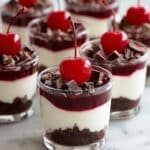 Keywords: mini dessert cups, chocolate cherry dessert, no-bake dessert, layered dessert, whipped cream dessert