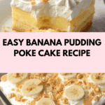 This Easy Banana Pudding Poke Cake combines moist yellow cake with creamy banana pudding for a delightful, crowd-pleasing dessert. Topped with whipped cream, vanilla wafers, and fresh bananas, it’s simple to make and perfect for any occasion.