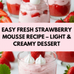 Keywords: strawberry mousse, fresh strawberry dessert, no bake mousse, easy mousse recipe, whipped cream dessert