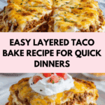 This Easy Layered Taco Bake is a delicious and simple way to enjoy all the flavors of tacos in a comforting casserole. With layers of seasoned beef, creamy salsa con queso, melty cheese, and soft tortillas, it’s perfect for a quick weeknight dinner or a casual gathering.
