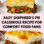 This Easy Shepherd’s Pie Casserole is a hearty and comforting dish featuring a savory ground beef and vegetable filling topped with creamy mashed potatoes and melted cheddar cheese. Perfect for a family dinner, this classic casserole combines rich flavors and simple ingredients for a satisfying meal.