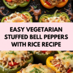 These easy vegetarian stuffed bell peppers are a colorful and nutritious meal, perfect for weeknight dinners or meal prepping. Filled with a flavorful mix of rice, vegetables, and spices, they are comforting and satisfying. You can customize the filling to suit your taste or dietary preferences.