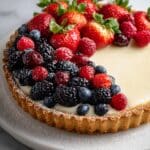 The French Lemon Cream Tart is a delightful dessert featuring a crisp sweet shortcrust pastry filled with a smooth, tangy lemon cream. Topped with fresh berries and a glossy finish, it’s a refreshing treat perfect for any occasion.