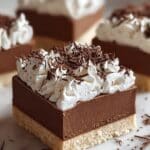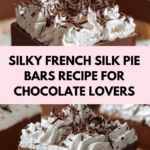 Delicious and creamy French Silk Pie Bars featuring a tender buttery crust, rich chocolate filling, and a light whipped cream topping. These easy-to-make bars combine the classic flavors of French Silk Pie in a convenient square form perfect for sharing.