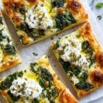 Keywords: Greek white pizza, roasted garlic pizza, spinach pizza, vegetarian pizza, homemade pizza, feta cheese pizza, ricotta pizza