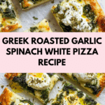 Greek Roasted Garlic Spinach White Pizza offers a delicious twist on traditional pizza, featuring a creamy blend of cheeses, roasted garlic, and fresh spinach. This flavorful white pizza is perfect for those who love savory, herb-infused dishes without tomato sauce.
