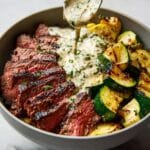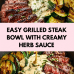 This grilled steak bowl combines tender, flavorful steak with smoky grilled zucchini and a creamy herb sauce for a satisfying meal. Whether served over rice or mashed potatoes, it’s a simple yet impressive dish perfect for weeknight dinners or weekend gatherings.
