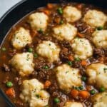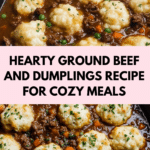 This comforting Ground Beef and Dumplings recipe features tender beef simmered in a flavorful gravy with aromatic herbs and spices, topped with fluffy homemade dumplings steamed to perfection. It’s a hearty, one-pot meal perfect for cozy dinners.