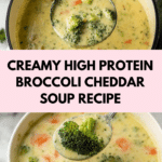 Keywords: broccoli cheddar soup, high protein soup, creamy broccoli soup, healthy soup recipe, low fat soup