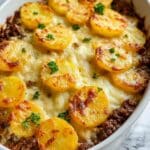 Hobo Casserole with Ground Beef and Potatoes is a comforting, cheesy baked dish featuring layers of thinly sliced potatoes, seasoned ground beef, and melted cheddar and Parmesan cheeses. Perfect for an easy weeknight dinner, this casserole combines hearty ingredients with flavorful Italian seasoning, baked to golden perfection in the oven.