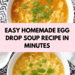 This Homemade Egg Drop Soup is a classic Chinese comfort dish featuring silky ribbons of cooked egg in a flavorful chicken broth, subtly seasoned with ginger, garlic salt, and black pepper. It’s a quick and easy soup perfect for warming up on any day, garnished with fresh scallions for a mild onion flavor and added texture.