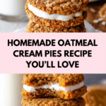 These homemade oatmeal cream pies are soft, chewy oatmeal cookies sandwiched with a fluffy cream cheese frosting. They offer a nostalgic, comforting treat perfect for satisfying your sweet tooth with a homemade touch.